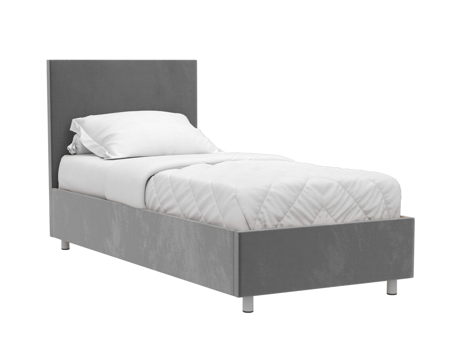 Кровать оснащена основанием с подъемным механизмом, под которым располагается бельевой ящик глубиной 16 см. Рекомендуемая высота матраса от 13 см, вес матраса до 50 кг. Чехлы на царгах несъемные. Высота/толщина царг: 28 см / 4 см (средняя), 2 см - (боковые).