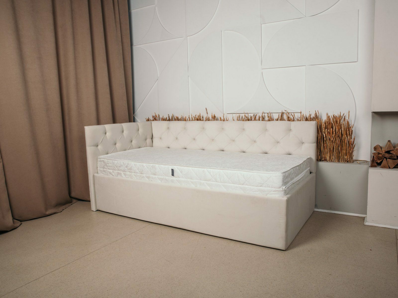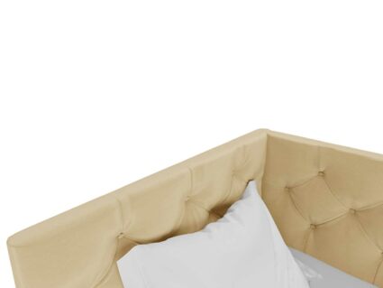 Кровать Бриони обладает элегантным лаконичным дизайном и изящно впишется в детскую комнату, спальню или гостиную. Модель можно использовать в том числе как диван, поскольку она оснащена уютным угловым изголовьем. Спинка мебели получила мягкую стёжку, оформленную каретной стяжкой. Пуговицы обтянуты той же тканью, что и основное изделие. Угловая структура кровати позволяет существенно сэкономить пространство и обеспечить при этом комфортный отдых.