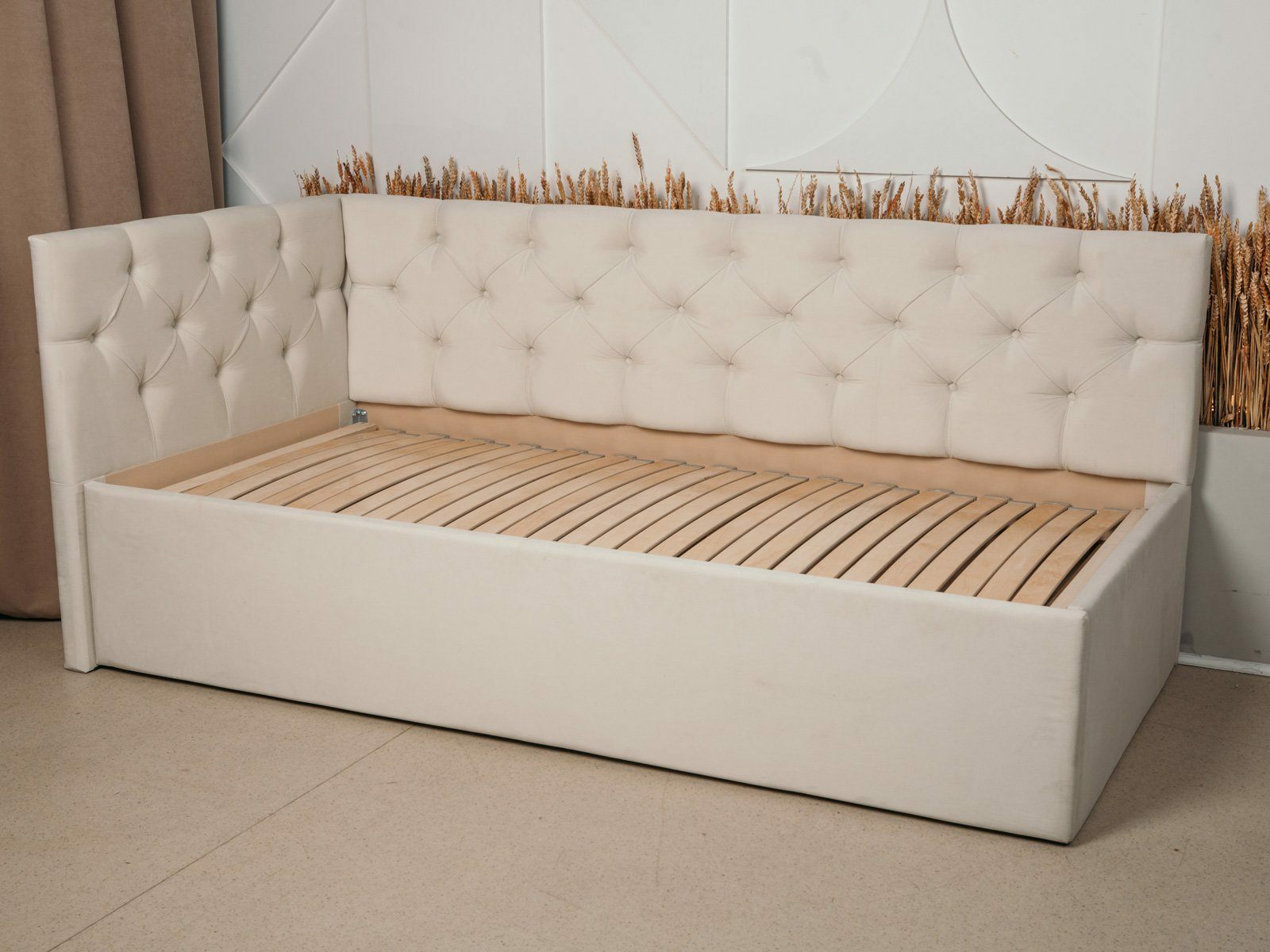 Обратите внимание: фотографии кровати представлены для примера и общего впечатления. Обивка кровати выполнена в ткани велюр Velutto 05.