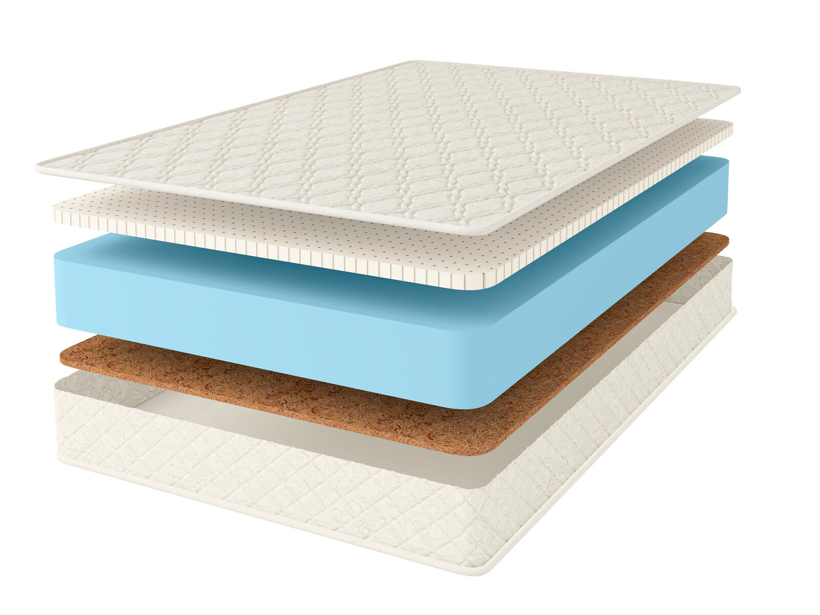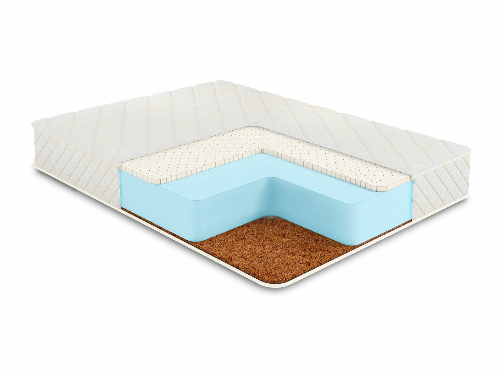 Более жёсткая поверхность проложена латексированной кокосовой койрой. Это экологически чистый натуральный наполнитель высокой плотности. Койра обеспечивает удержание позвоночника в естественном и правильном положении на протяжении всего отдыха.