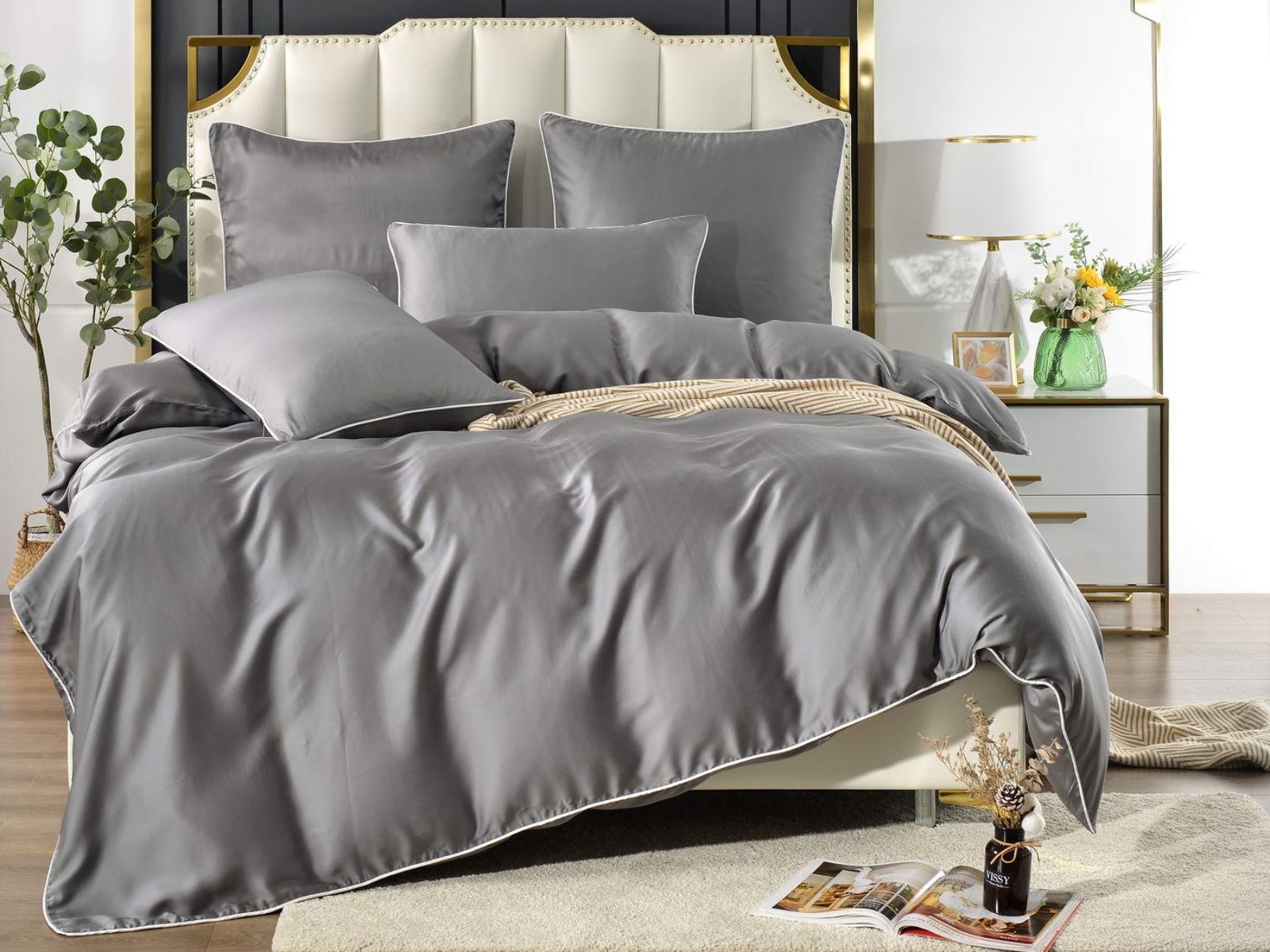 Тенсел – это натуральная ткань из эвкалиптового волокна. На ощупь тенсел напоминает шелк – он такой же легкий и гладкий. Постельное бельё из такой ткани обладает хорошей терморегуляцией, поэтому его можно использовать в любое время года – не будет жарко или холодно. На данный момент, тенсел пользуется большой популярностью во всем мире.