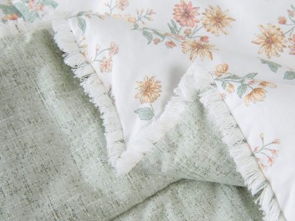 Особенность: кант на одеяле и наволочках декорирован бахромой.