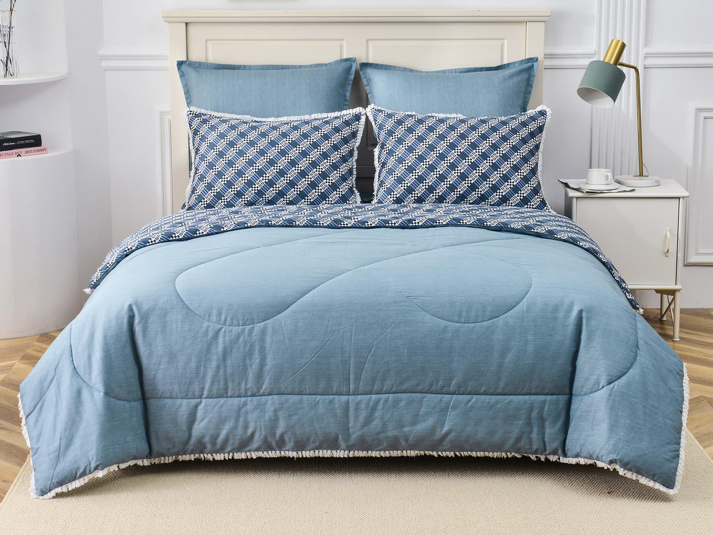 Особенность: кант на одеяле и наволочках декорирован бахромой.