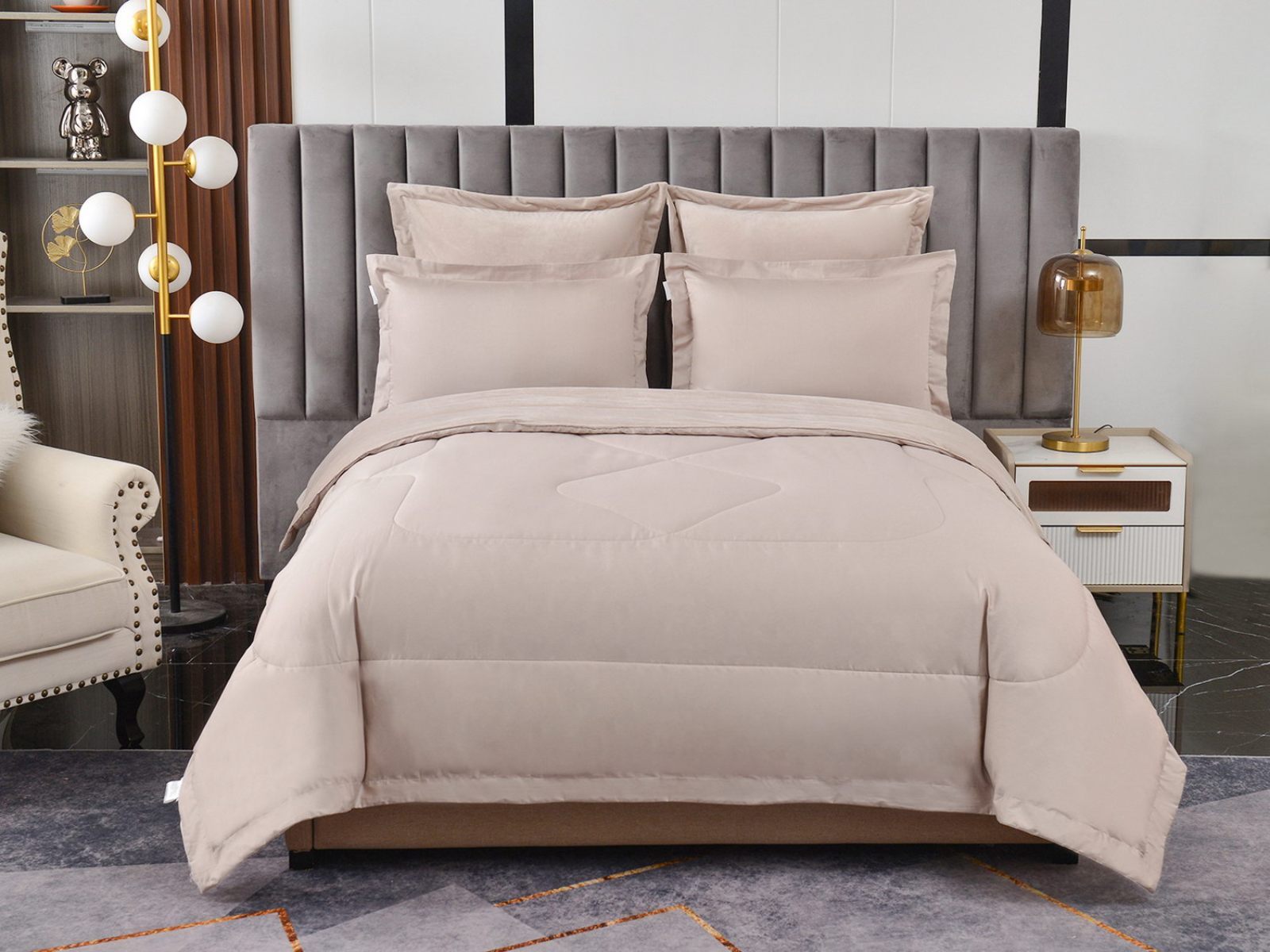 Изготовленный из качественной вискозы и мягкого хлопка трендовых цветов, комплект создаёт приятное ощущение на коже. Его экологичное наполнение из 100% эковолокна обеспечивает гипоаллергенные свойства, подарив вам спокойные и уютные ночи.