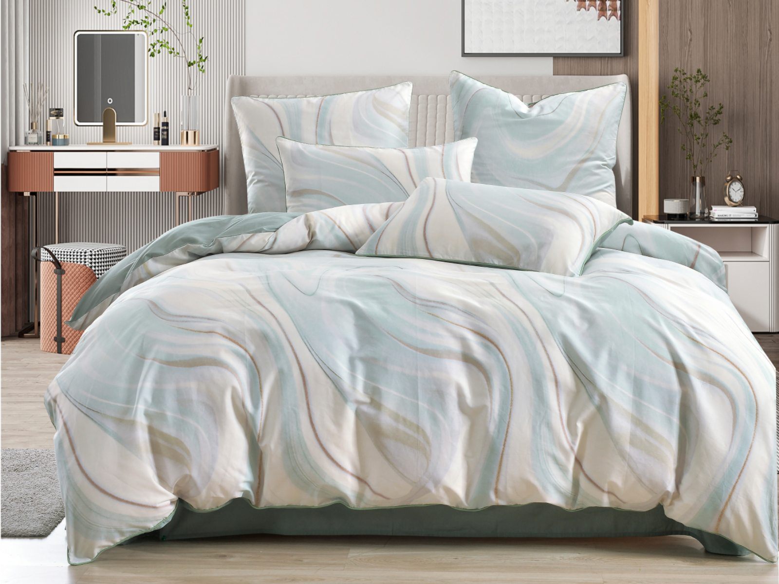 Лорайн (зеленый) — идеальный выбор для тех, кто одинаково ценит комфорт, эстетику и практичность. В составе — Хлопок 100%, поэтому у постельного белья исключительная износостойкость. Даже после многочисленных стирок оно сохранит первозданный цвет, прочность, мягкость и гладкую фактуру. Благодаря отличной воздухопроницаемости материал обеспечивает прохладу летом, а зимой согревает, плюс дарит приятные тактильные ощущения и здоровый сон. Сатин — еще и удивительно красивая ткань, КПБ из нее украсит интерьер спальни, сделает ее по-настоящему уютным местом для полноценного отдыха. К тому же у дизайнеров этот материал всегда в тренде, поэтому с такой покупкой вы точно не прогадаете.