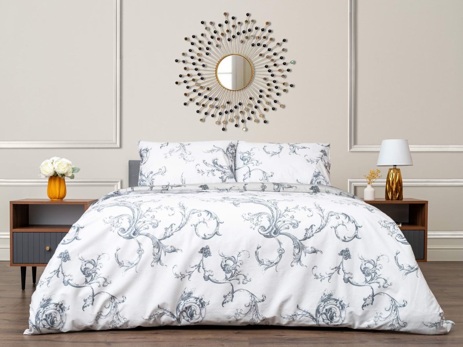 Комплект Мэгги легко стирается в обычной машине в бережном режиме и также легко гладится.