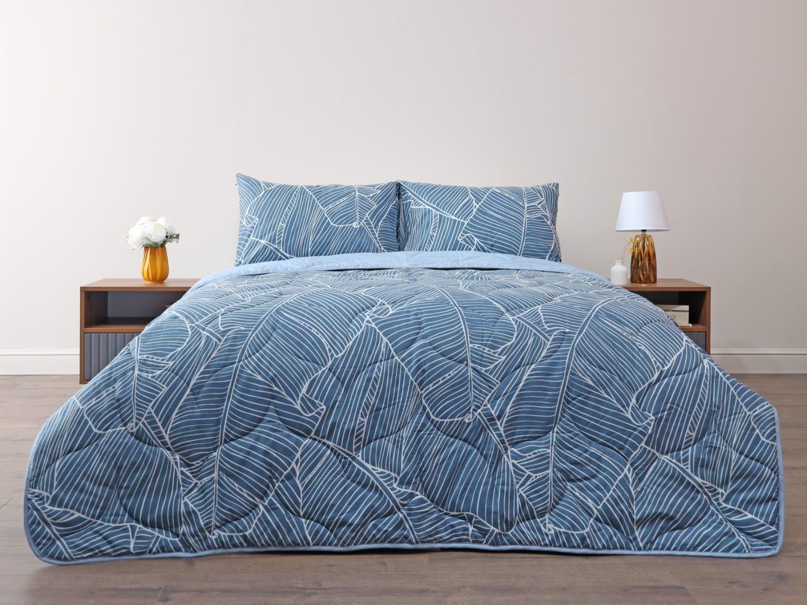 Комплект Мелвин легко стирается в обычной машине в бережном режиме и также легко гладится.