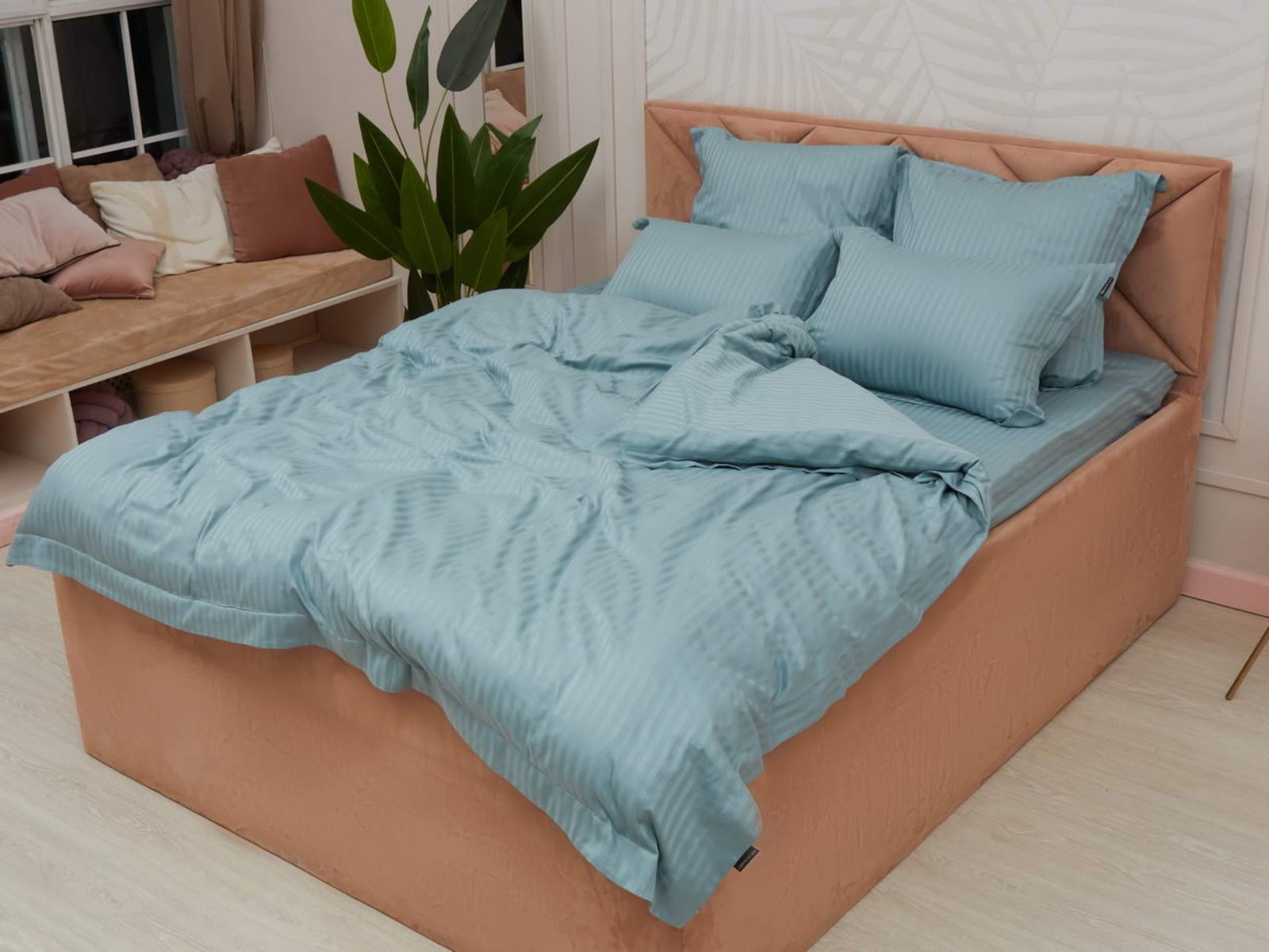 За изделиями легко ухаживать: стирка при температуре не выше 40 градусов с минимальным отжимом. Важно хорошо просушить! При правильном уходе комплект прослужит долгие годы, не потеряв форму и цвет.