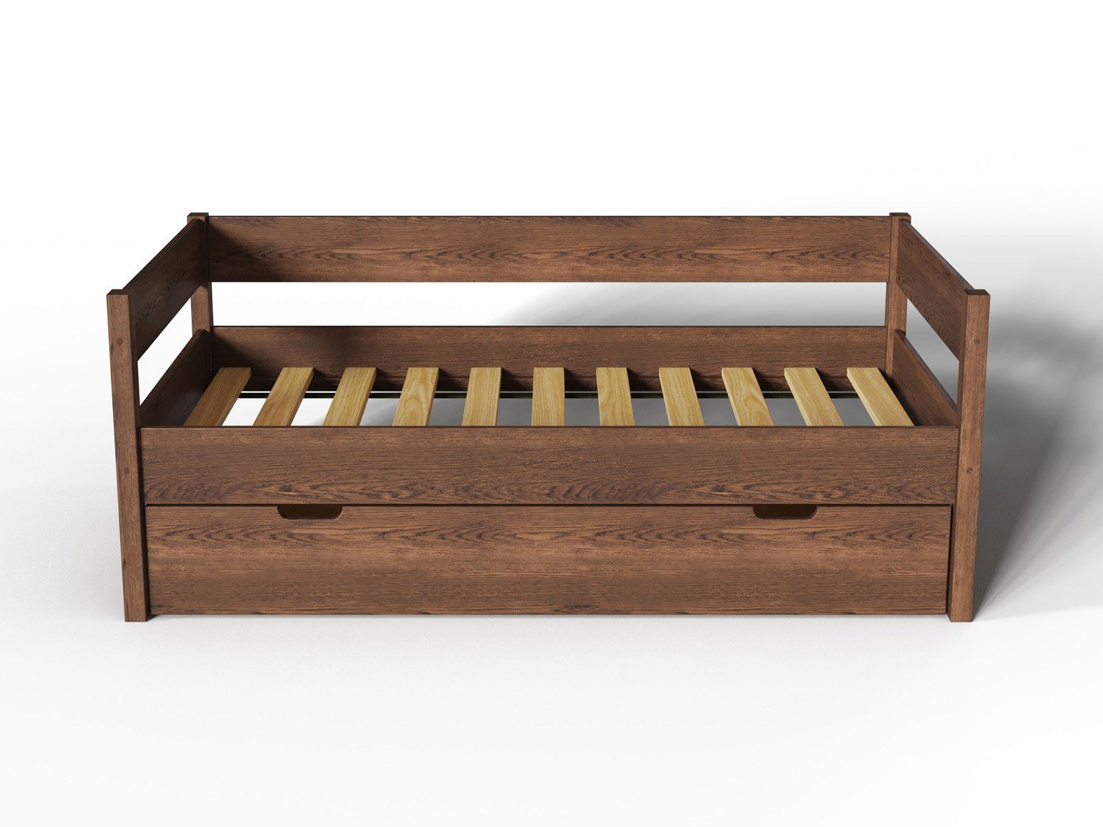 Компактная кровать «Алекса» легко впишется в любой современный интерьер детской комнаты или спальни. Ортопедическое основание кровати позволяет сформировать идеальное спальное место, подобрав матрас необходимого уровня жёсткости. Под основанием кровати расположен вместительный ящик для постельных принадлежностей.