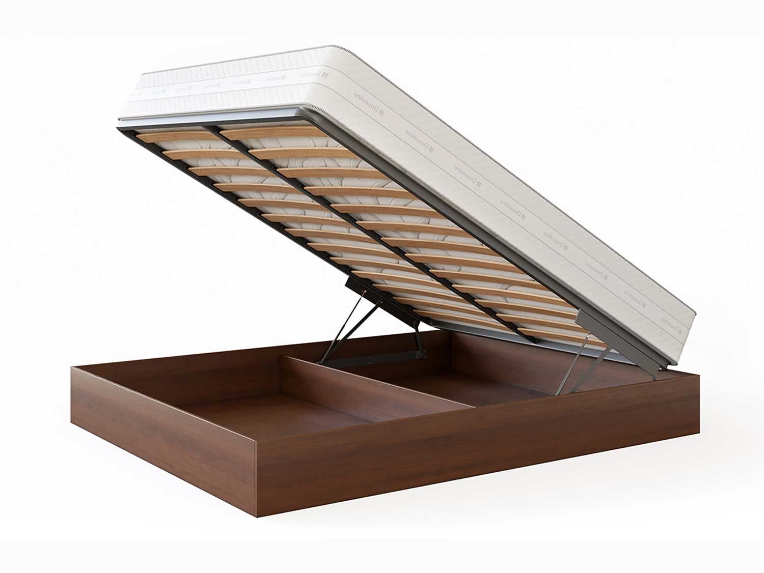 Кровать Куб представляет собой металлическое основание с ламелями из березового шпона и ящик для белья, которые соединены специальным механизмом подъема, который рассчитан под вес матраса. Стандартно предусмотрено основание Dream. Требуется сборка.
