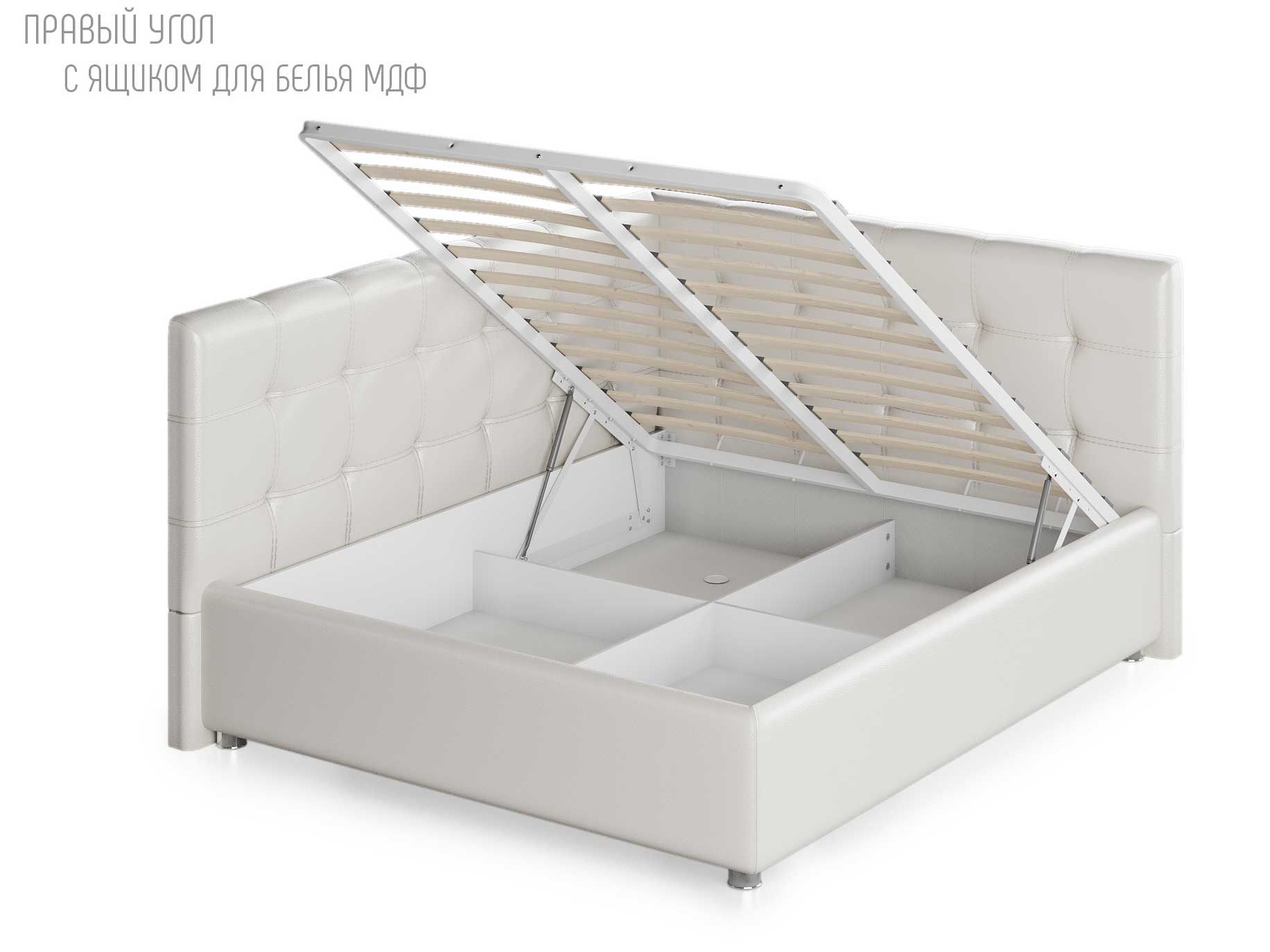 Для определения варианта исполнения угла требуется "встать" по длинной стороне угловой кровати, лицом к длинной боковине и определить, с какой стороны будет изголовье: изголовье со стороны левой руки - вариант исполнения "левый", изголовье со стороны правой руки - "правый" (на фото представлена кровать с исполнением угла — левый).