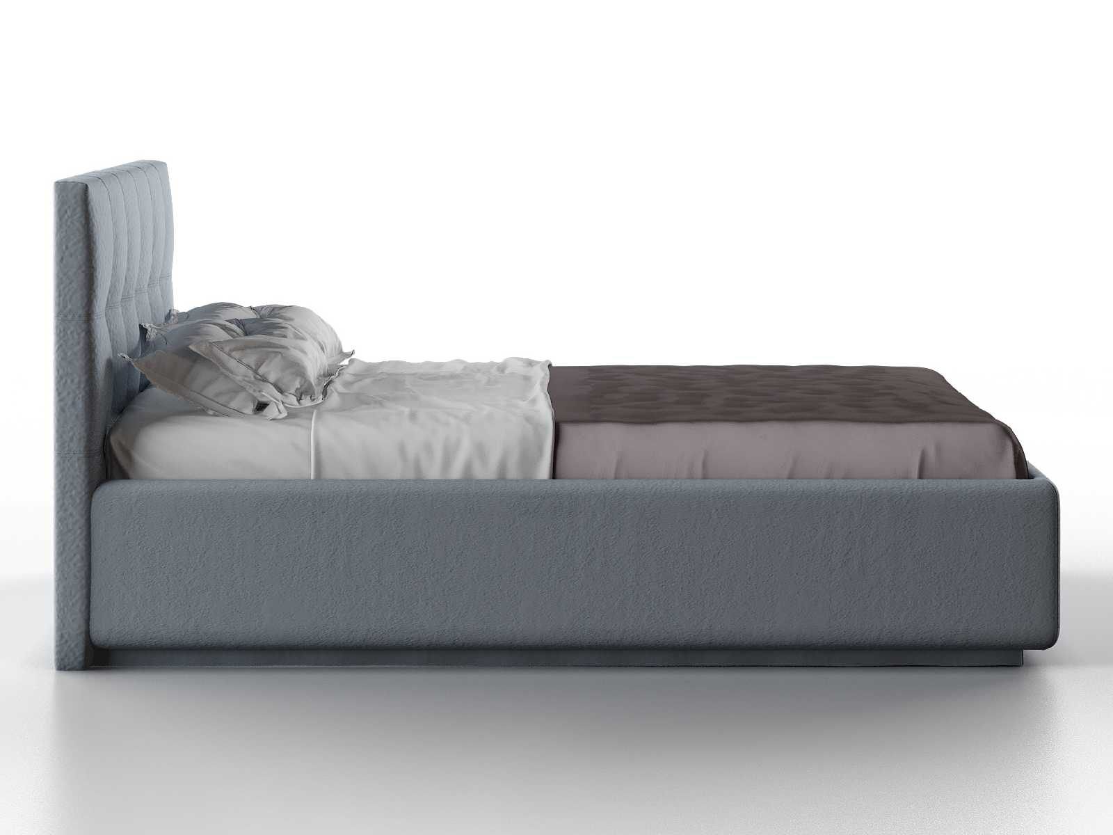 Кровать укомплектована IQ с подъемным механизмом и ящиком для белья без дна (дополнительная платная опция - дно к ящику IQ из HDF (ХДФ). Каркас кровати на цоколе, декоративный чехол на цоколе съёмный. Глубина ящика для белья - 30 см, без ограничения нагрузки на ящик.