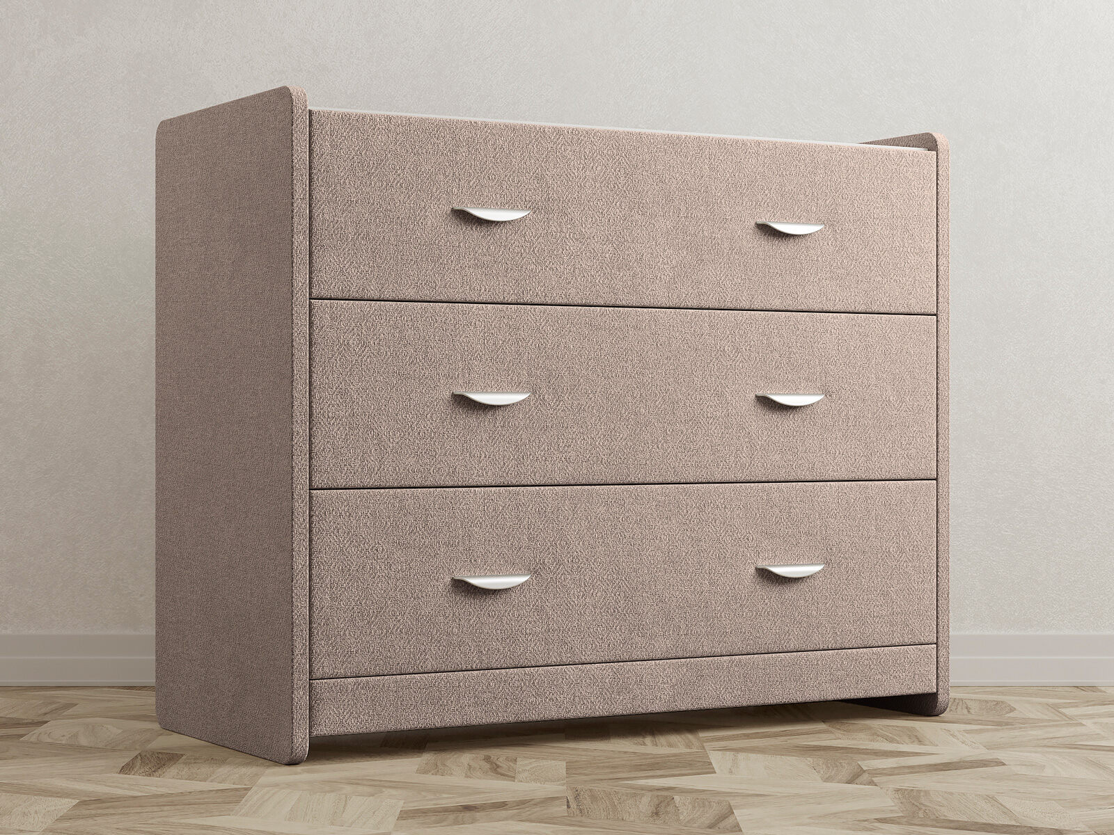 Современный и элегантный комод отличается повышенным удобством. Фасад ящиков и стенки комода покрыты обивочным материалом и выполняются в 43 вариантах цветового исполнения. Для удобства использования и продления срока эксплуатации, рекомендуется использовать стеклянную накладку. Накладка используется в качестве столешницы для тумбы и защищает ее от повреждений и загрязнений. Стеклянная столешница заказывается дополнительно.