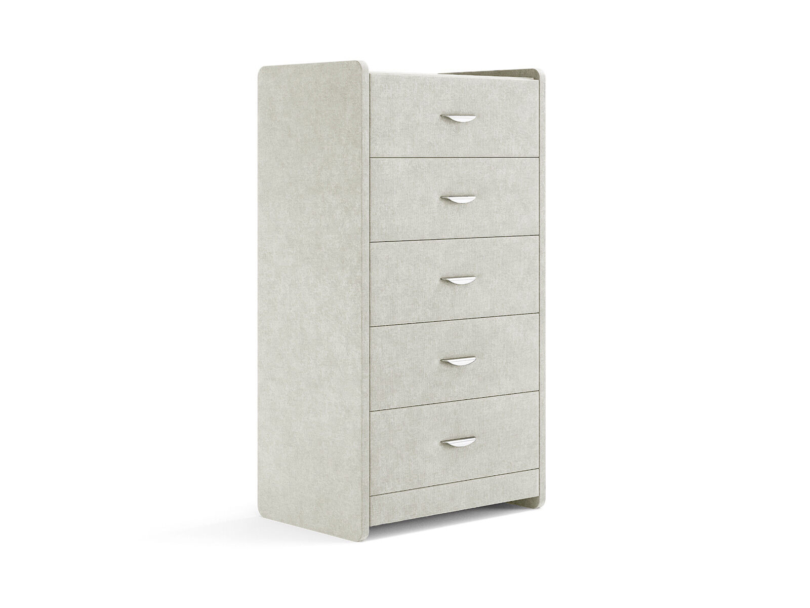 Комод с 5 ящиками сдержанного дизайна дополнит любой интерьер и сделает его более функциональным. Каркас комода и фасад ящиков покрыты обивочным материалом и выполняется в 43 вариантах цветового исполнения. Для удобства использования и продления срока эксплуатации, рекомендуется использовать стеклянную накладку. Накладка используется в качестве столешницы для тумбы и защищает ее от повреждений и загрязнений. Стеклянная столешница заказывается дополнительно.