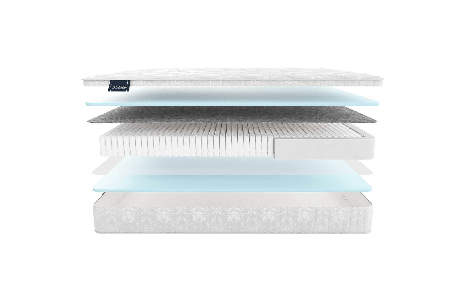 С одной стороны, матрас укомплектован эластичной универсальной пеной natural foam – аналогом натурального латекса, имеет хорошие восстанавливающие свойства и устойчива к многократной эксплуатации. А термофиксированный фетр придает дополнительную жесткость и изолирует пружинный блок.