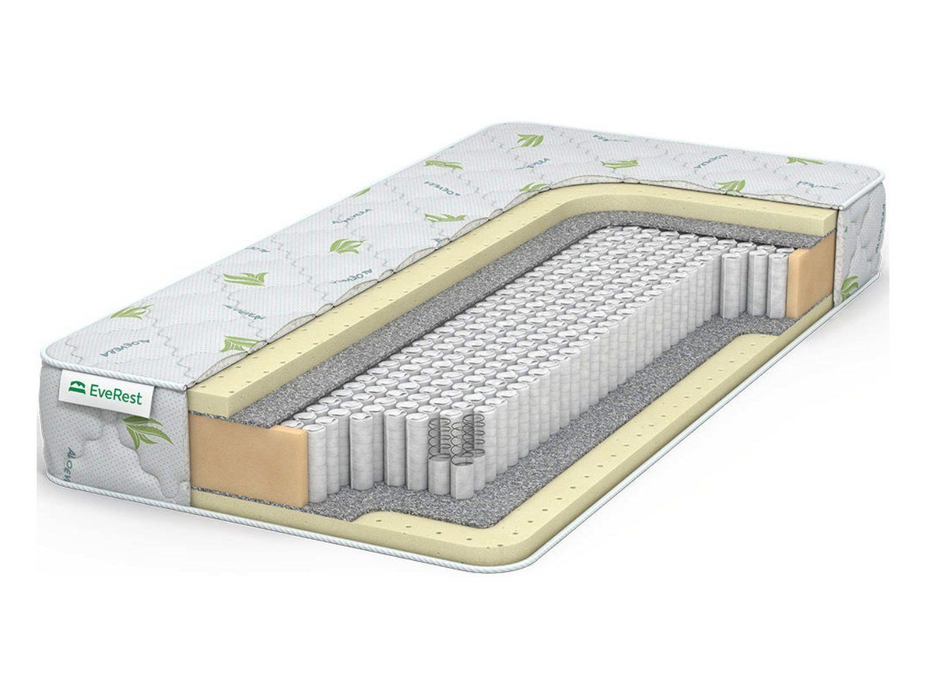 Покрытие матраса изготавливается из нежного трикотажа со стёжкой для придания красивого рельефа сторонам. Ткань прошла пропитку антибактериальным составом Aloe Vera.