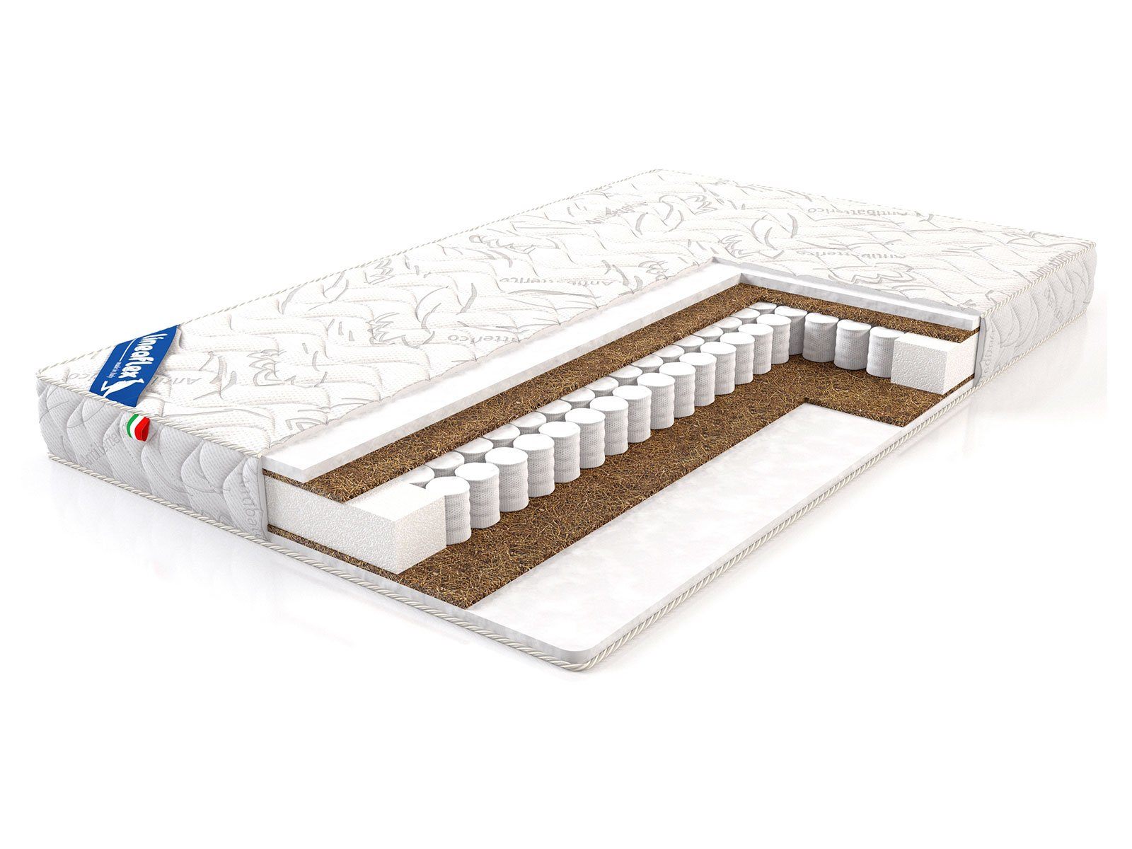 В число наполнителей матраса входит такой материал как койра кокоса. Его получают из растительной основы пальмовых деревьев. Койра изготавливается из волокнистой оболочки кокоса. Жёсткую субстанцию отделяют от ореха, дробят, очищают и формируют из неё слои. Полученные полотна высушиваются, а затем заливаются раствором с добавлением натурального латекса, что придаёт материалу эффект прорезиненности и повышают его упругость.