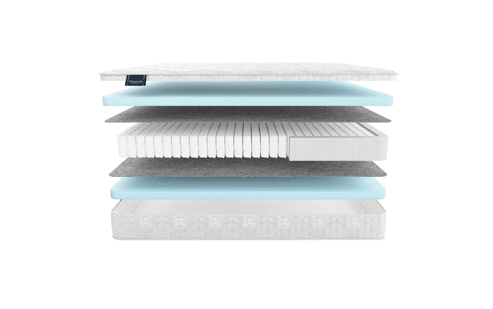Термофиксированный фетр изолирует пружины и слои наполнителей друг от друга. Материал препятствует каким-либо повреждениям и деформациям внутри матраса, что очень важно для его долгой службы.
