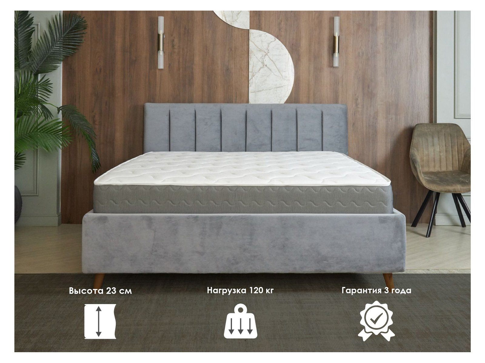 Матрас сочетает природный комфорт от кокоса и латекса на одной стороне с нежной пеной Мемори на другой, а 5-зональный блок гарантирует точечную ортопедическую поддержку.