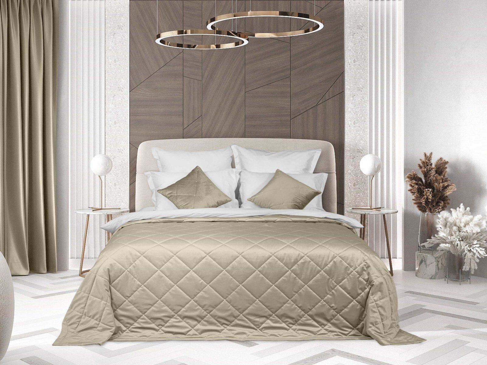 Покрывало Velluto создано для роскошного украшения спального места. Изделие выполнено из бархатистого велюра, который очарователен внешне и приятен на ощупь. Элегантная ниточная стежка с пуговками добавляет шарм и эстетику. Нейтральный серо-бежевый цвет подходит под многие интерьерные задумки. Покрывало в этом цвете выглядит спокойно и естественно, поэтому оно послужит благородным аксессуаром для спальни. Завершающим аккордом в оформлении станут подушки в декоративных чехлах из этой же коллекции.*