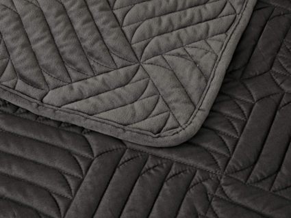 Покрывала выполнены в 10 оттенках: крем, мокко, пепельный, песочный, светло-бежевый, светло-серый, серый, темно-серый, чайная роза и черный. Стежка в виде геометрического орнамента подойдет к любому современному интерьеру. Из-за особого плетения, велюровая ткань покрывала отражает свет и красиво переливается при различном освещении.