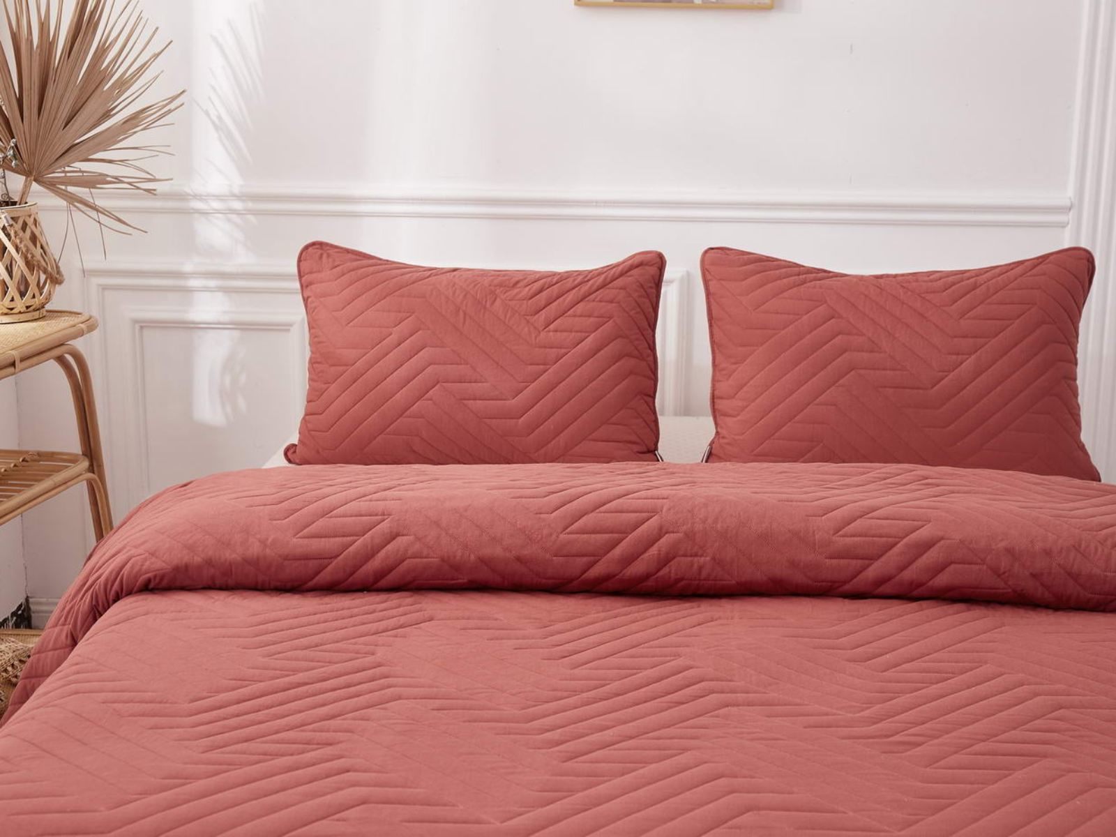 Покрывала Мориц украшены лаконичным геометрическим орнаментом. Сочетание углов и линий органично впишется в самые разнообразные интерьерные стили. Покрывала выполнены в восьми оттенках: крем, пудра, антрацит, бежевый, серый, шоколад, терракот, синий. Такая цветовая гамма не оставят никого равнодушным.