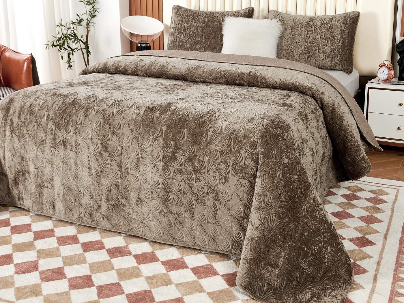 Очаровательное покрывало "Розалин" – идеальный спутник вашего отдыха и уюта. Это воплощение комфорта и стиля создано из высококачественного бархата в различных трендовых цветах и обязательно подчеркнёт уникальность вашего интерьера.