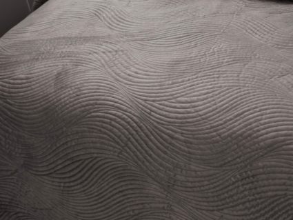 Традиционно в японском саду камней линии на песке символизируют отсутствие хаоса и спокойствие. Такой плавный узор напоминает размеренные потоки воды, которые оказывают на психику благоприятный эффект. Изящное покрывало Жизель с рисунком в виде подобных линий поможет обрести умиротворение, ведь в современном мире так важно уметь привести мысли в порядок. Помимо положительного воздействия на нервную систему, рисунок в виде волны придаст изысканности и утонченности Вашему интерьеру.