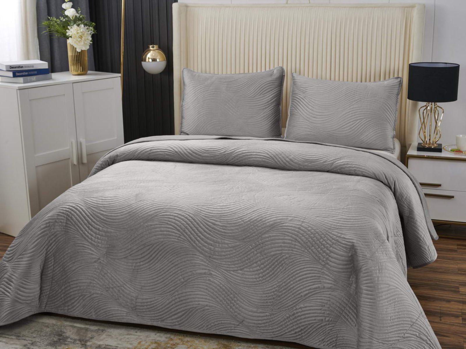 Традиционно в японском саду камней линии на песке символизируют отсутствие хаоса и спокойствие. Такой плавный узор напоминает размеренные потоки воды, которые оказывают на психику благоприятный эффект. Изящное покрывало Жизель с рисунком в виде подобных линий поможет обрести умиротворение, ведь в современном мире так важно уметь привести мысли в порядок. Помимо положительного воздействия на нервную систему, рисунок в виде волны придаст изысканности и утонченности Вашему интерьеру.