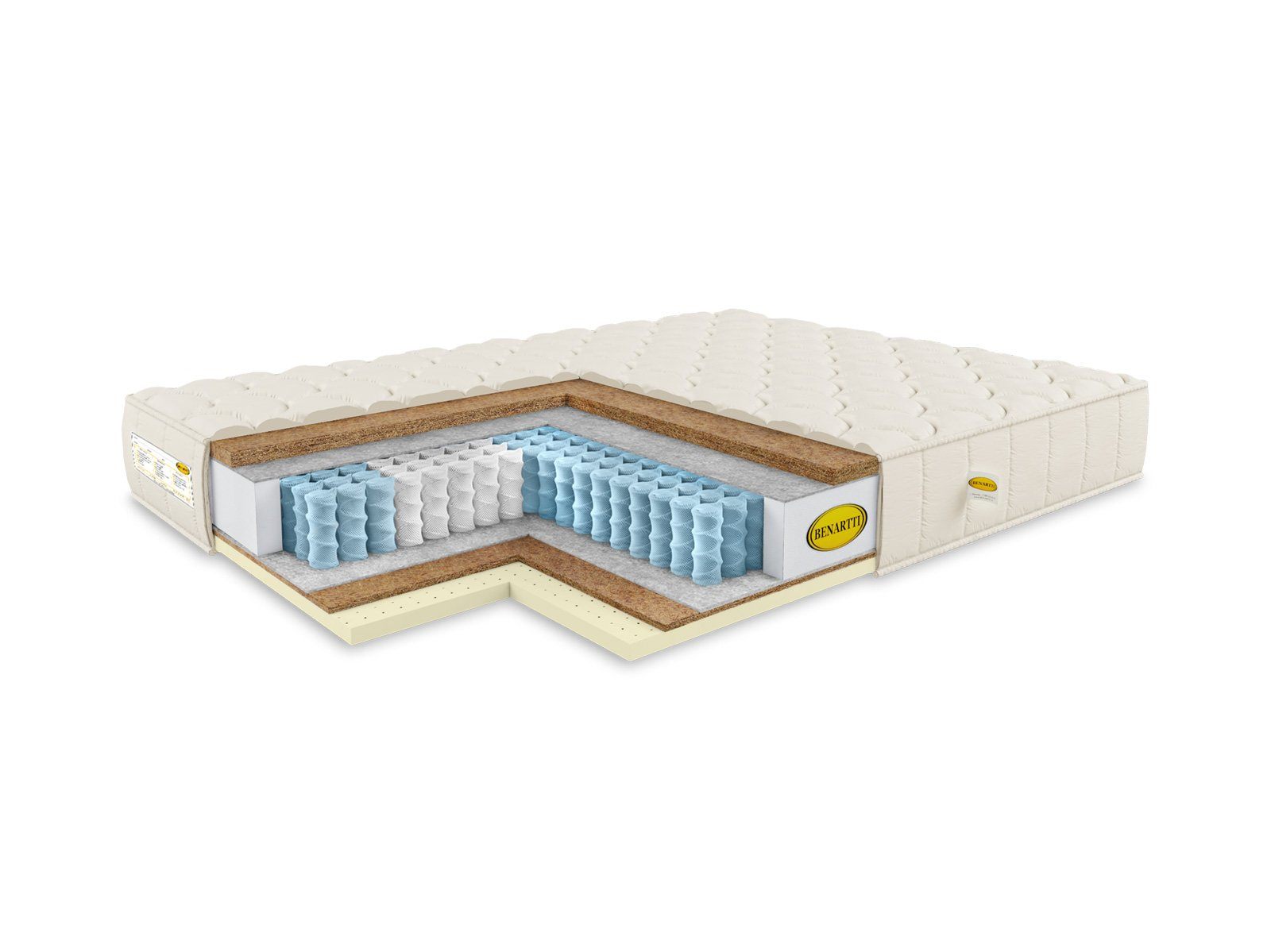 Помимо антибактериальных свойств матрас обладает ортопедическими и анатомическими качествами. Правильная поддержка спины осуществляется с помощью независимого пружинного блока S1000 и слоёв жёсткой кокосовой койры. Именно они удерживают позвоночник таким образом, что сохраняется его природный S-образный изгиб.
