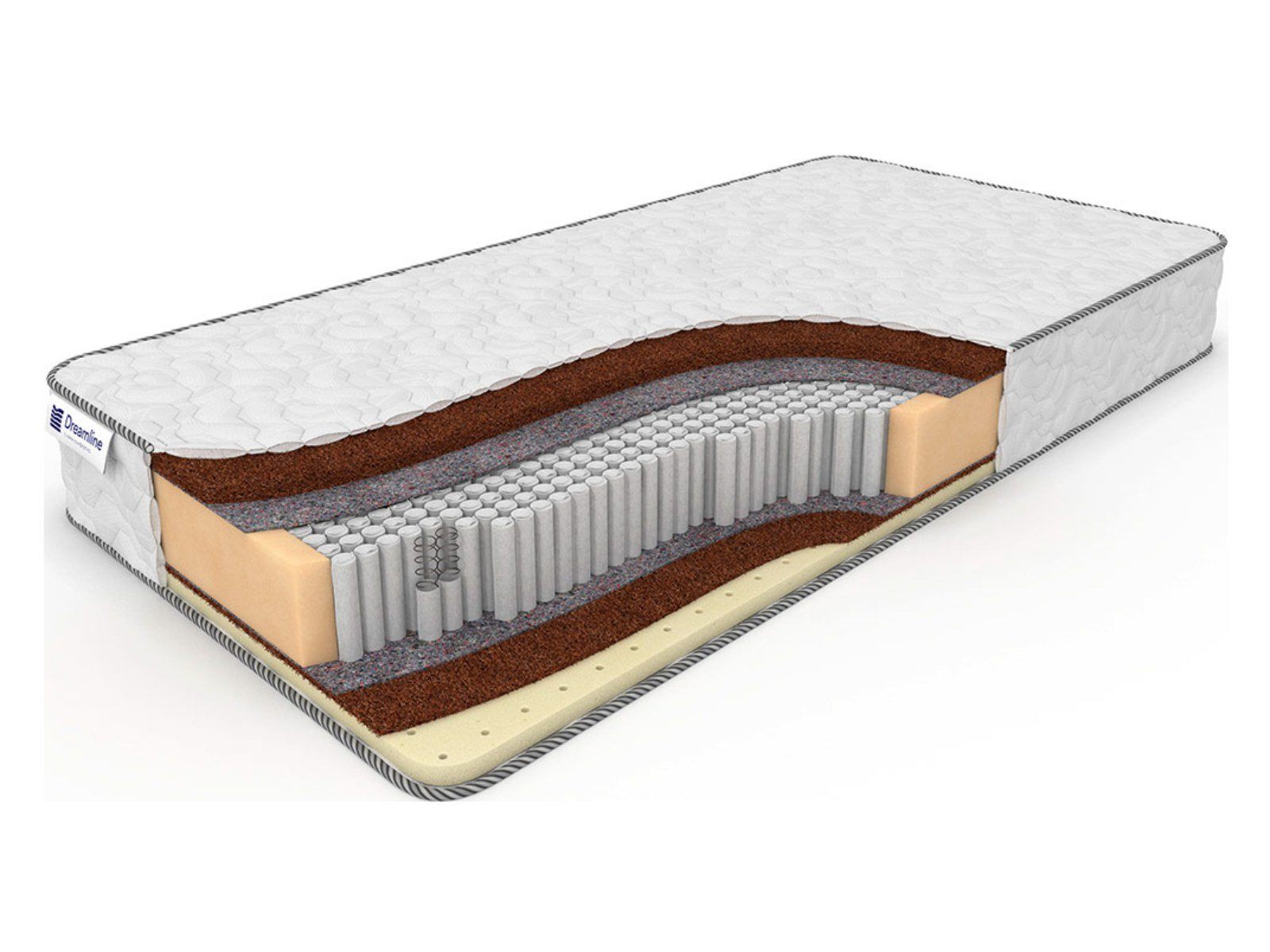 Наполнитель матраса: Кокосовая койра на жесткой стороне - абсолютно натуральный материал из волокон кокосового ореха. Термовойлок - используется как изоляционный слой, плотный, не боится нагрузок, стоек к износу. Латекс на стороне с умеренной жесткостью - материал безопасный, экологичный, гипоаллергенный, долговечный. Его структура обеспечивает движение воздуха и легко пропускает влагу.