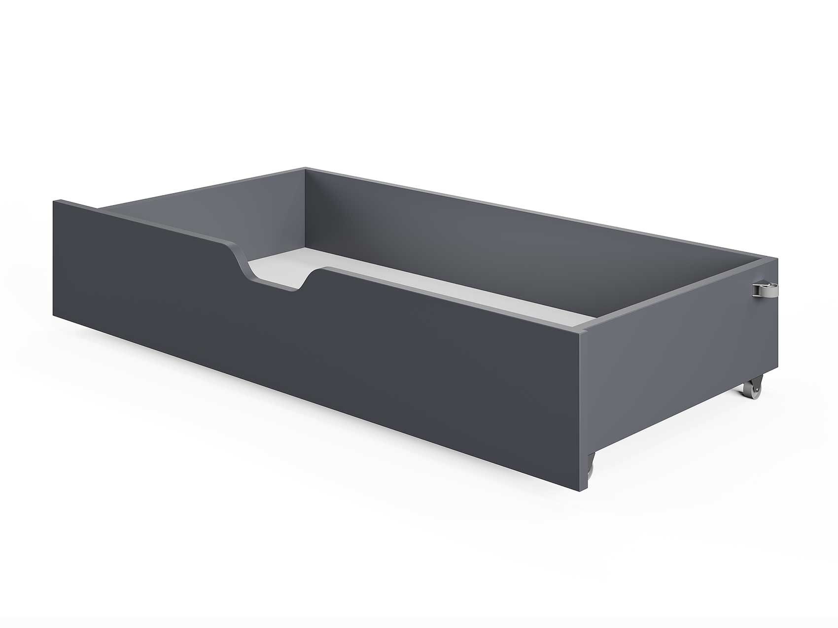 Ящиком для хранения вещей можно укомплектовать любую из трех кроватей Сонум: Mariana, Crystal, Ines. Он универсальный, вместительный, и способен выдержать вес до 10 кг. Ящик можно выполнить в тон кровати или контрастного цвета. Цвет - графит.