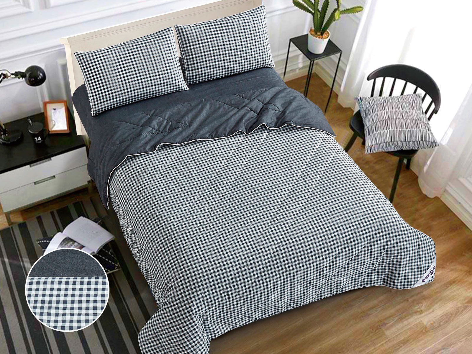 В данный комплект вместо пододеяльника входит облегченное одеяло. Комплект подойдет тем, кто устал от мучительного натягивания пододеяльников на одеяло.
